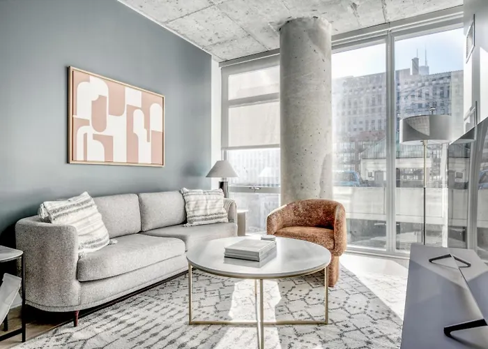 River North 1Br W Gym Pool Roof Nr Riverwalk Chi-816 goza de una ubicación céntrica en el distrito Centro de Chicago, a un corto paseo del Merchandise Mart. El Centro / Observatorio John Hancock está a una distancia de 2 km del apartamento de 70 m², mientras que la estación de autobuses Grand & Kingsbury EB está a unos 5 minutos a pie de la propiedad.